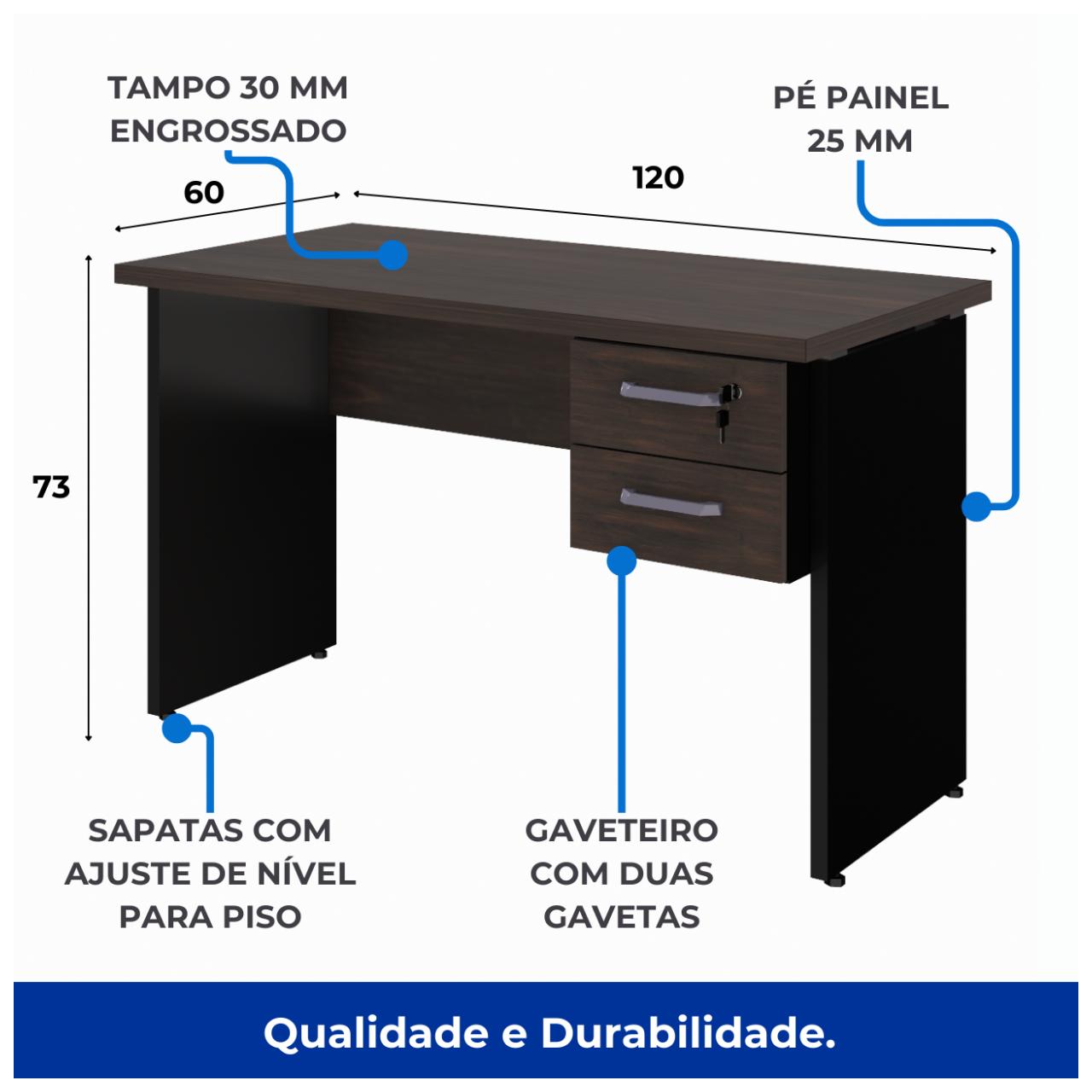 Mesa Escritório 1,20×0,60m – C/ 02 Gavetas MARSALA / PRETO – 23471