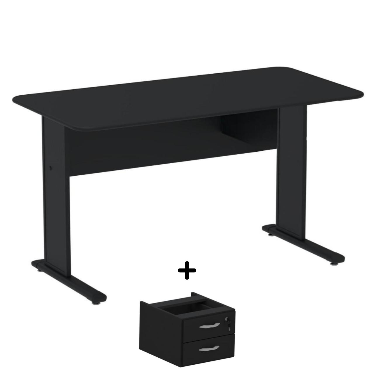Mesa Escritório 1,50×0,60m c/ Gavetas – Cor Preto – 44093