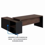 Mesa Escritório Diretorzinha com Aparador – Pé de Madeira – 1,90 x 1,60 m – Marsala / Preto