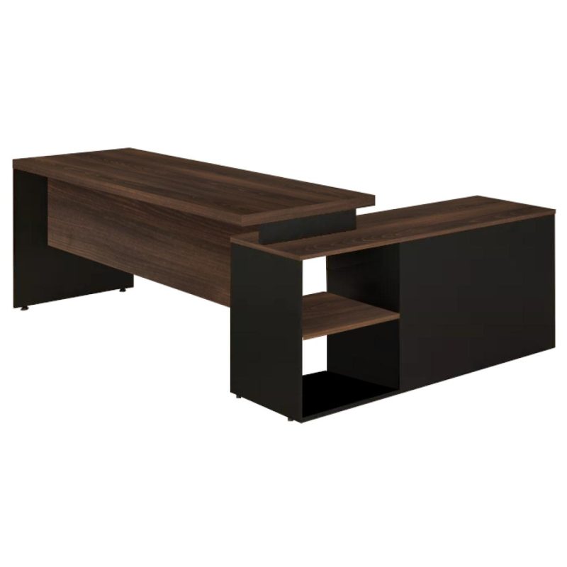 Formato: Mesa com aparador lateral integrado em formato “L”