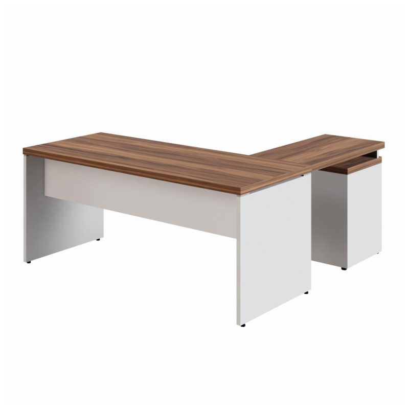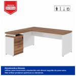 Mesa Escritório em “L” c/ Gaveteiro 1,70×1,60m NOGAL SEVILHA/BRANCO – 34328