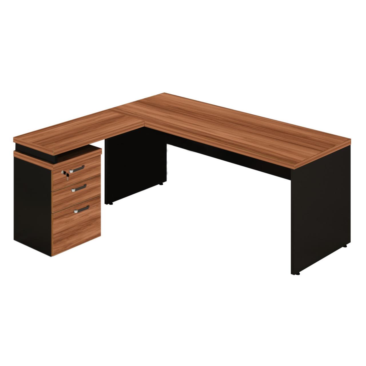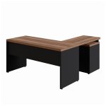 Mesa Escritório em “L” c/ Gaveteiro 1,70×1,60m NOGAL SEVILHA/PRETO – 21423