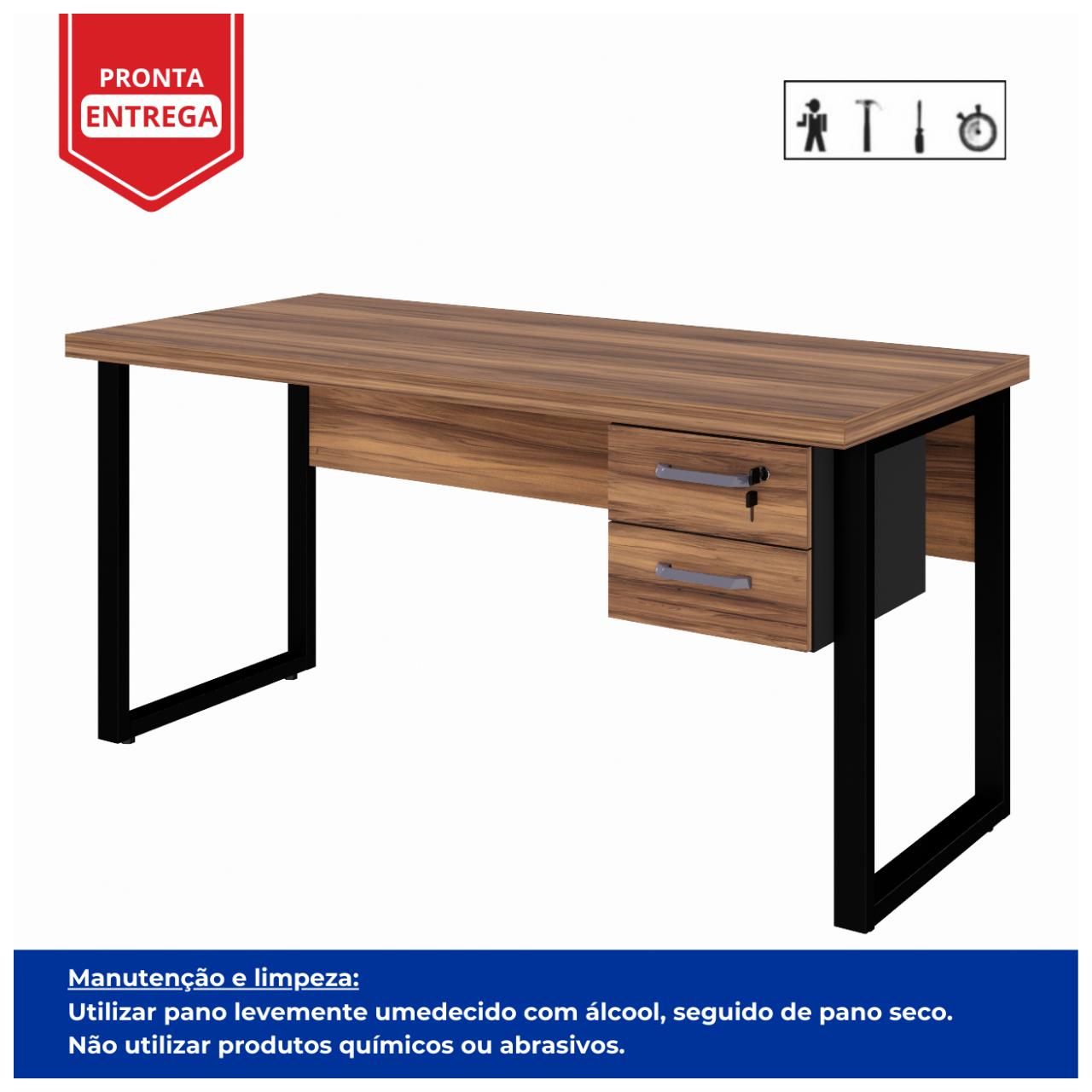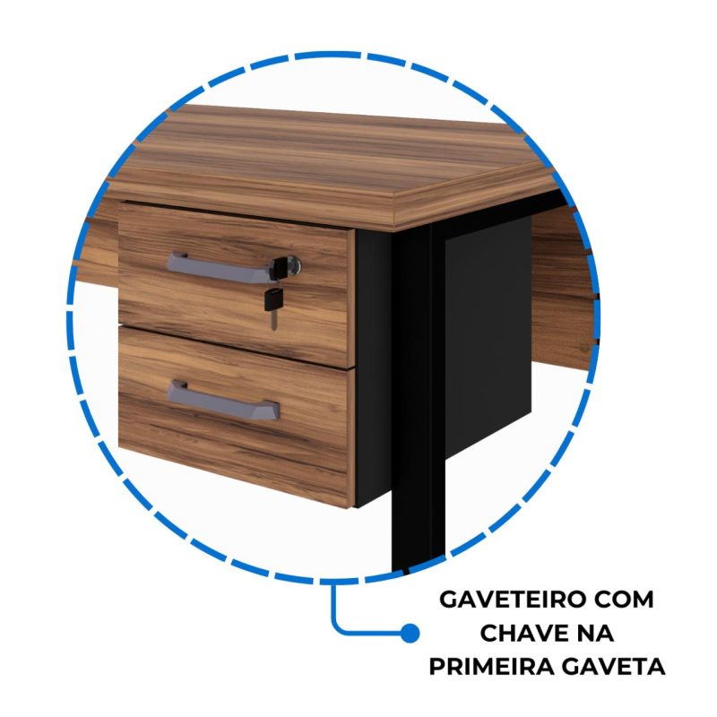 Mesa Escritório PÉ QUADRO 1,50×0,60m – C/ Gavetas – NOGAL SEVILHA/PRETO – 24473