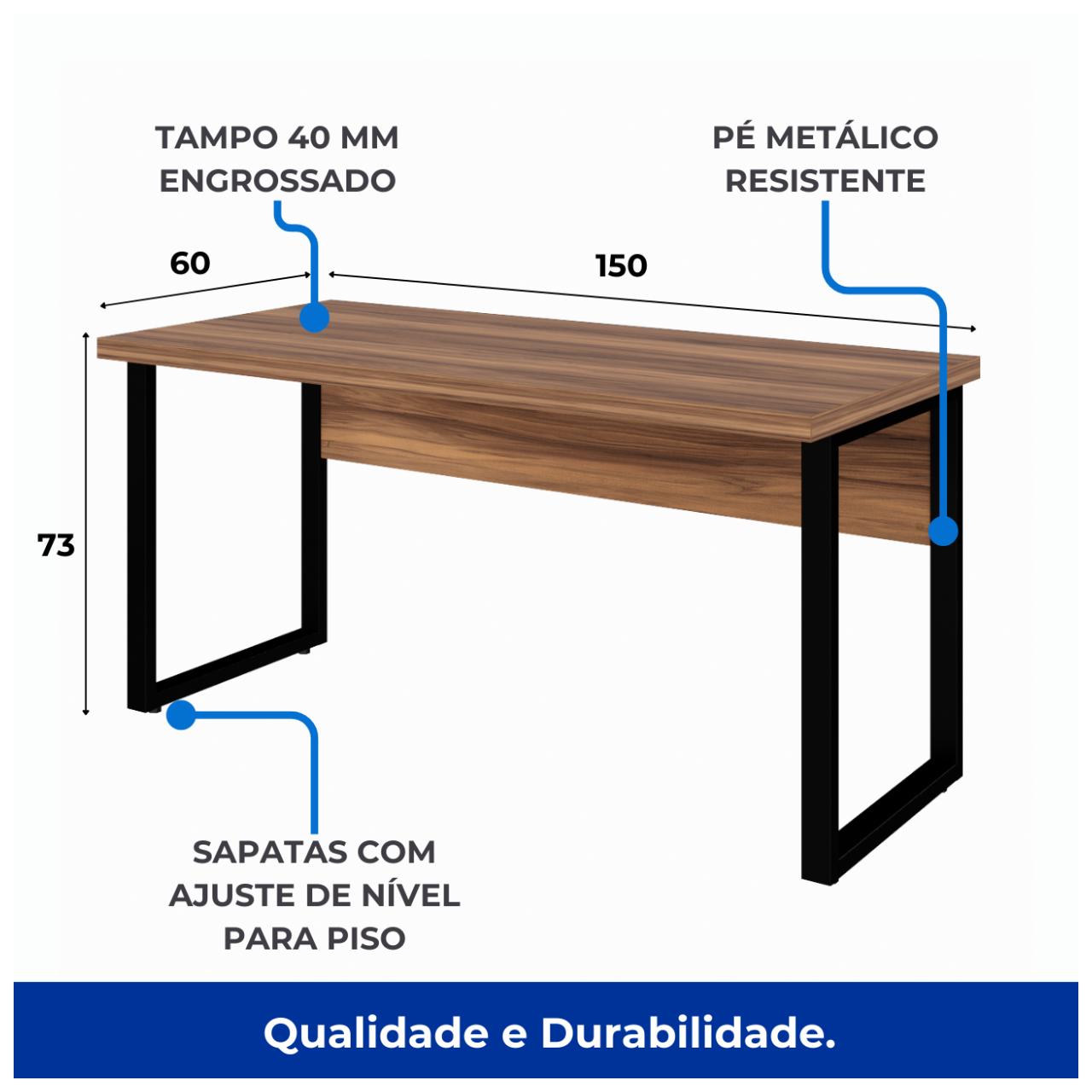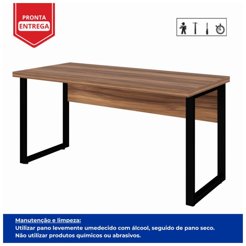 Mesa Escritório PÉ QUADRO 1,50×0,60m -S/ Gavetas – NOGAL SEVILHA/PRETO – 24472