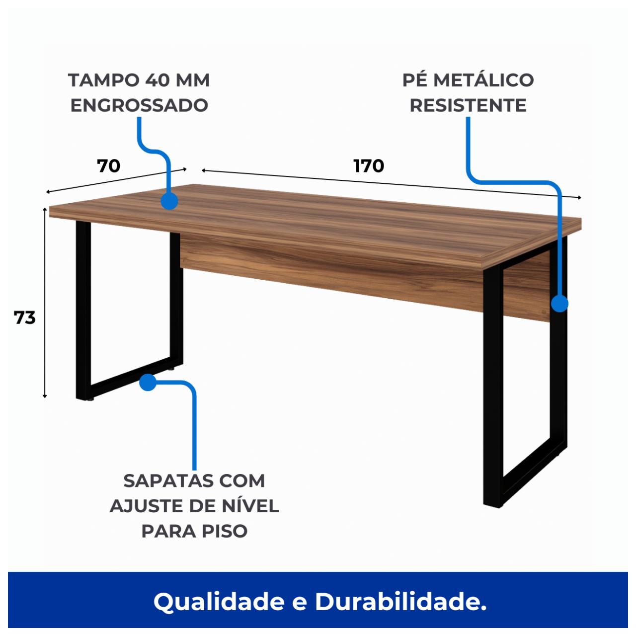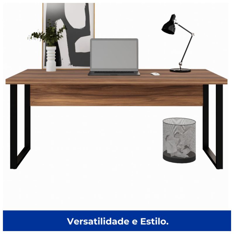 Mesa Escritório PÉ QUADRO 1,70×0,70m -S/ Gavetas – NOGAL SEVILHA/PRETO – 24474