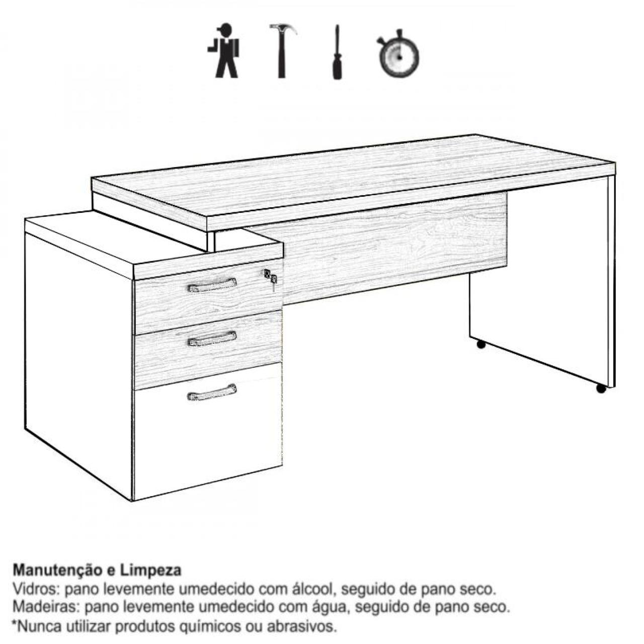 Conteúdo da Embalagem: Mesa Reta 1,92x70cm / Gaveteiro Pedestal