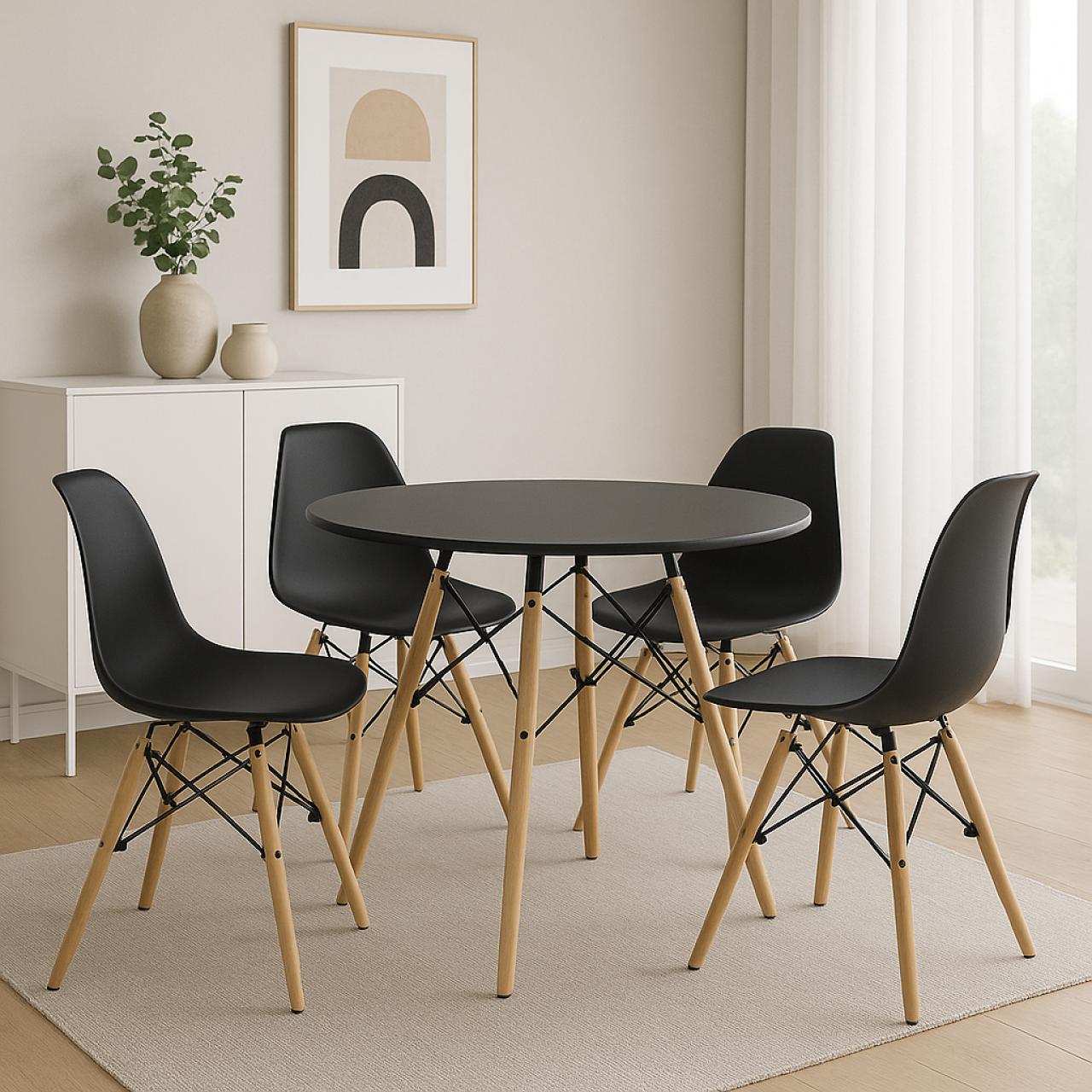 Mesa Redonda Eiffel – Tampo Preto Fosco e Base Madeira