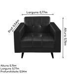 Poltrona com design clean e contemporâneo, ideal para salas de estar, recepções ou ambientes corporativos. Combina conforto, elegância e durabilidade em uma estrutura compacta.