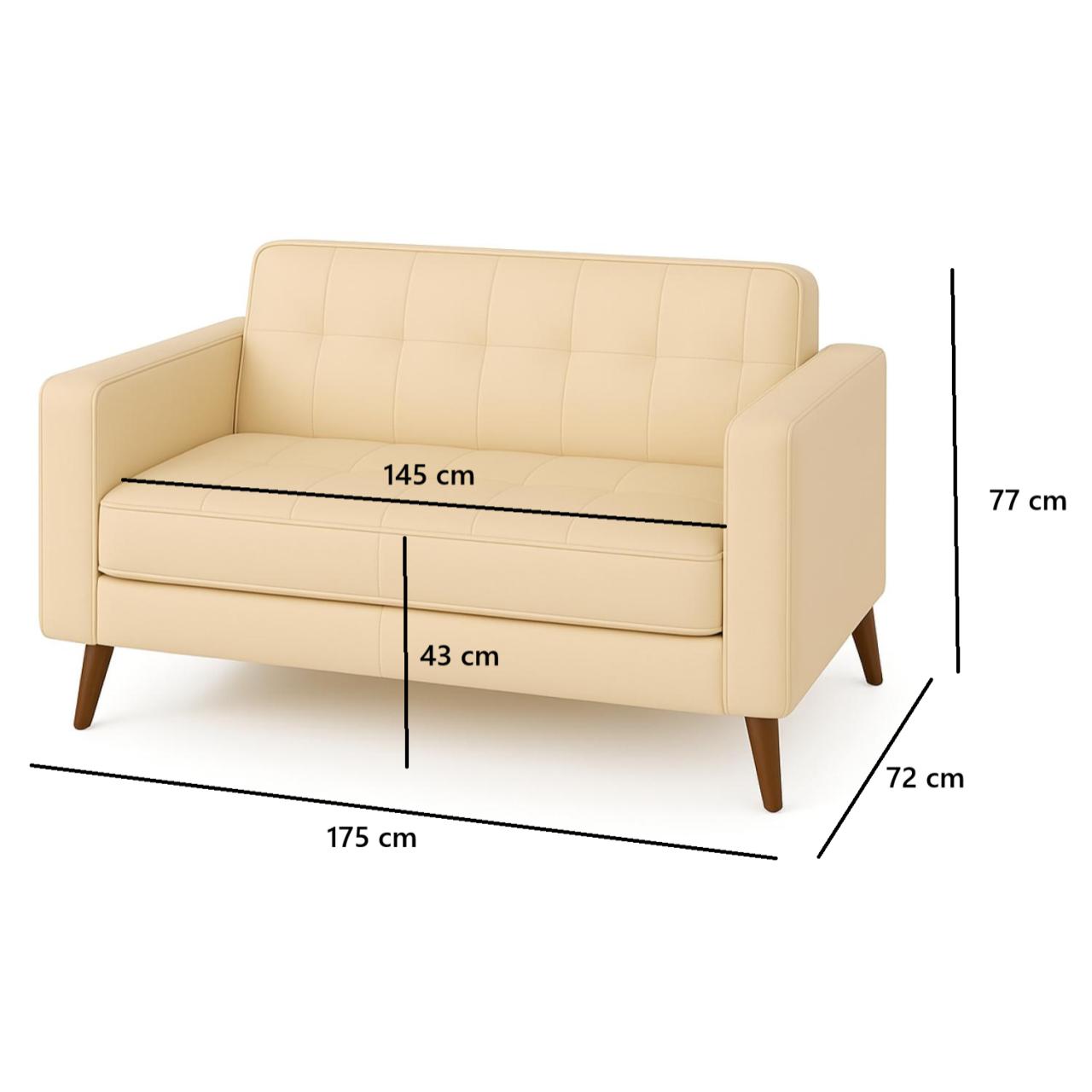 Sofá 3 Lugares Compacto – Cor Areia (Corino)