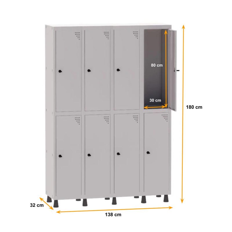 Roupeiro de Aço PAM c/ 08 PORTAS GRANDES – 1,80×1,38×0,32m – CZ/CZ – PANDIN – 74204