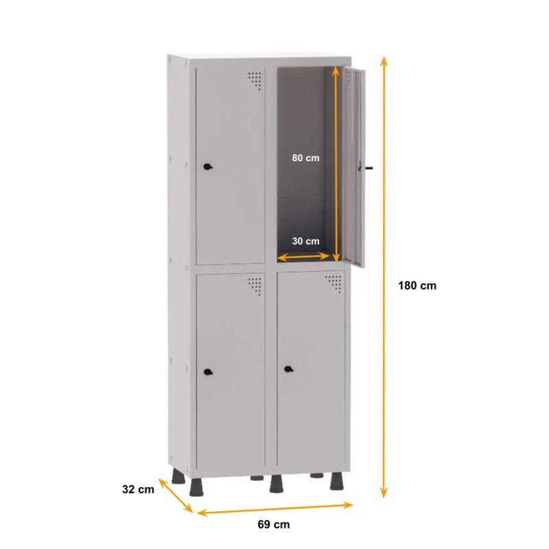 Roupeiro de Aço PAM c/ 04 PORTAS GRANDES – 1,80×0,69×0,30m – CZ/CZ – PANDIN – 74202