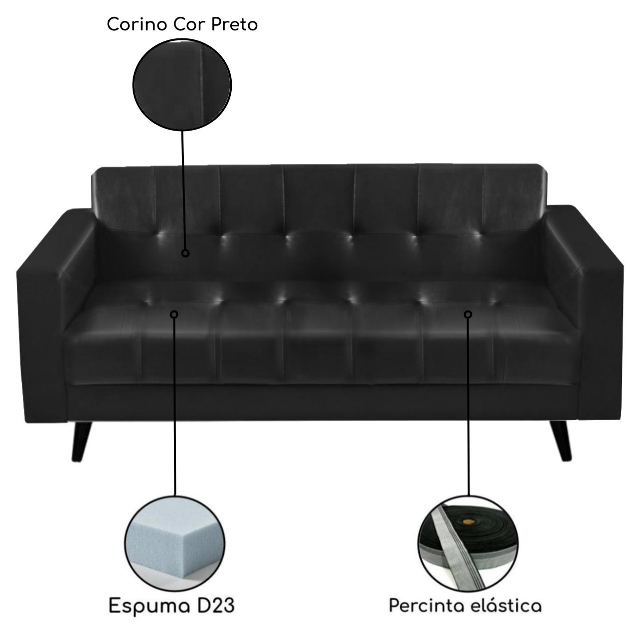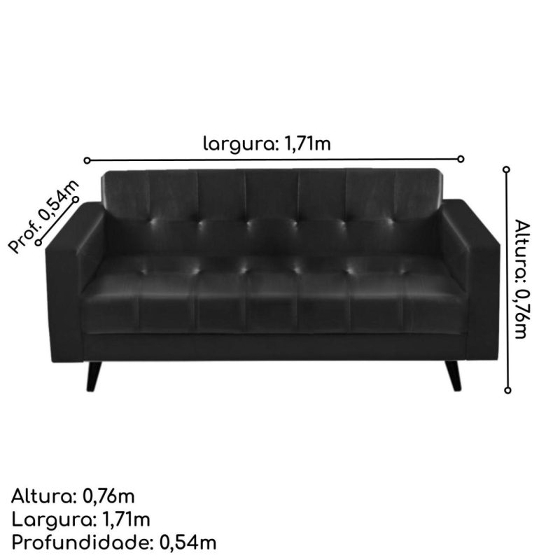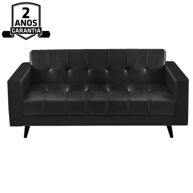 Sofá 3 Lugares – Estofado em Corino Preto